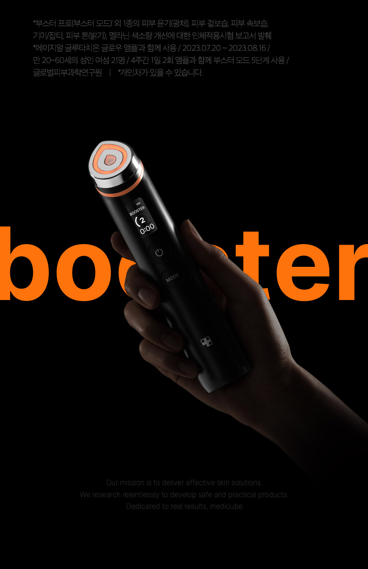 - 부스터 모드: 피부 속 깊숙이 유효 성분을 전달하여 맑고 투명한 피부로 가꿔줍니다. 기존보다 더욱 안정적으로 구현된 글로우 포레이션 기술로 유효 성분 흡수를 극대화하여 빛나는 광채 피부를 만들어 줍니다.