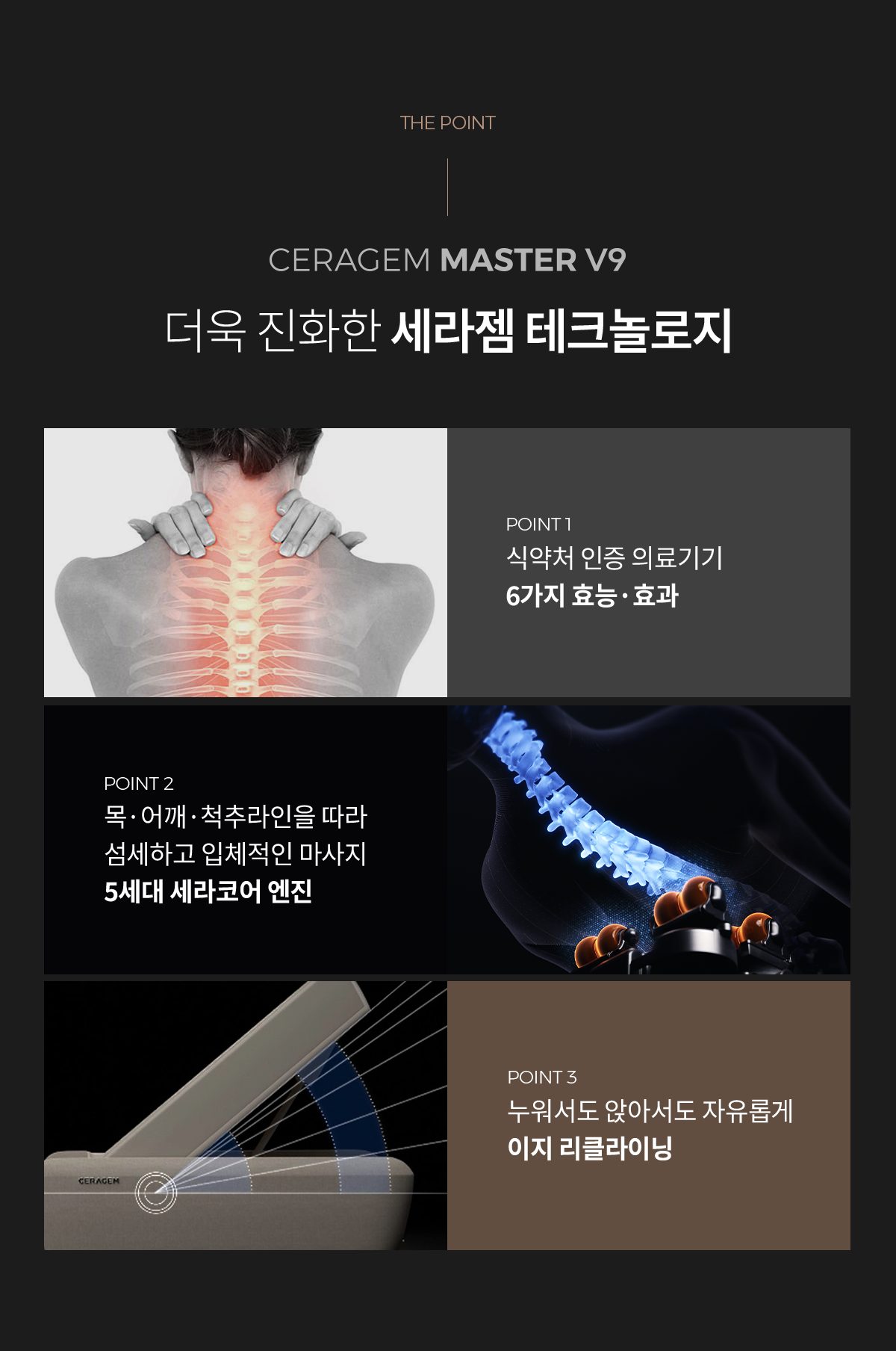 마스터 V9 시그니처에 탑재된 5세대 세라코어 엔진은 목 디스크 관리에 최적화된 기술입니다.