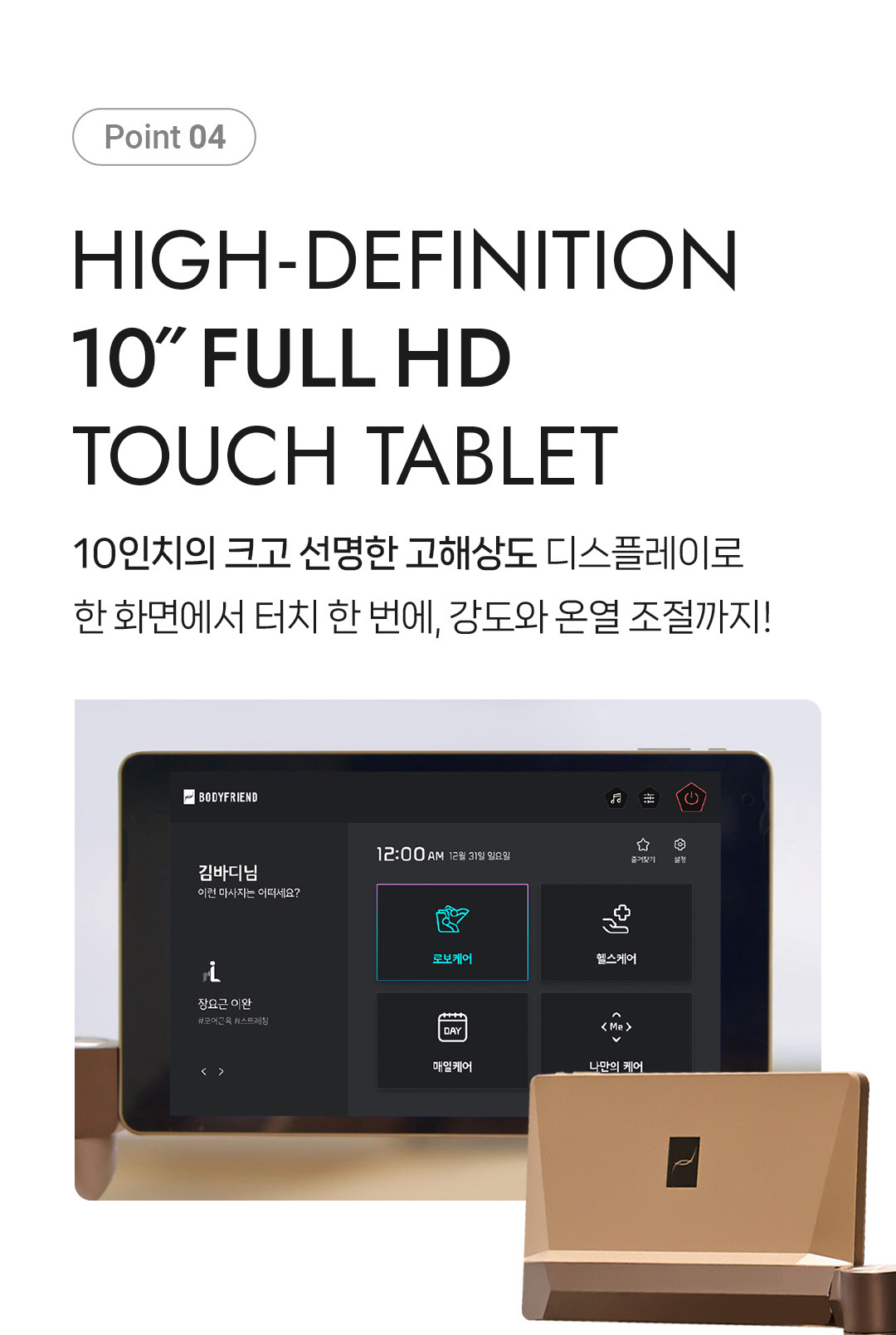 블루투스 스피커를 통해 스마트폰과 연결하여 좋아하는 음악을 감상하며 마사지를 즐길 수 있으며, 와이파이를 통해 자동으로 소프트웨어 업데이트가 가능하여 항상 최신 기능을 사용할 수 있습니다.