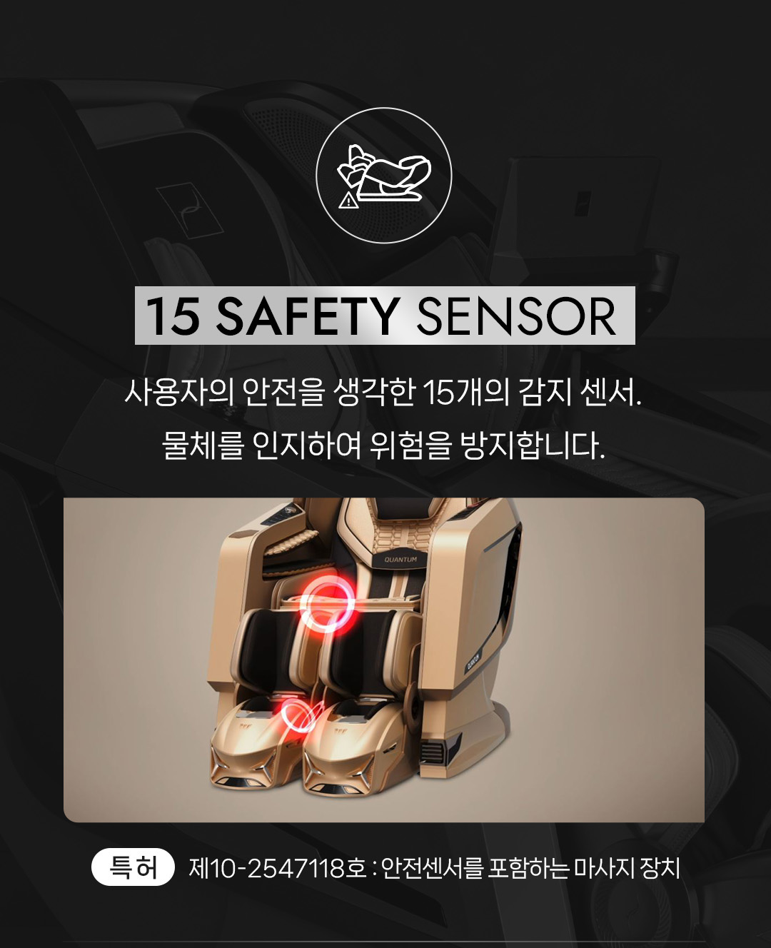 센서가 사용자의 체형을 자동으로 인식하여 맞춤형 마사지를 제공하며, 다리 길이 조절 기능은 최대 18cm까지 조절 가능하여 누구나 편안하게 마사지를 받을 수 있도록 도와줍니다.