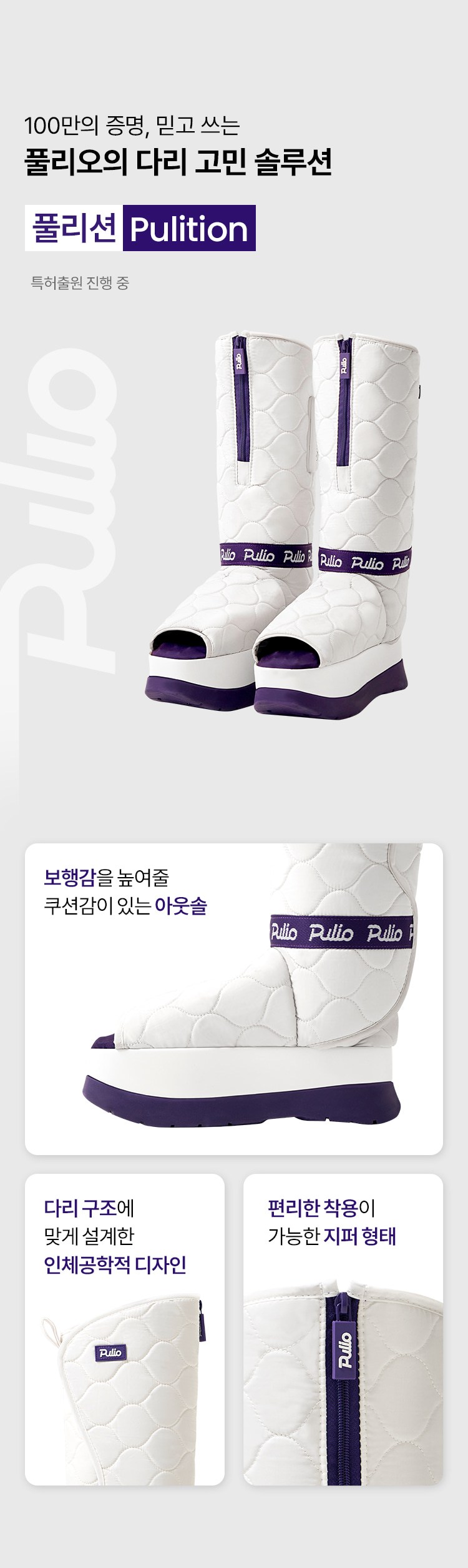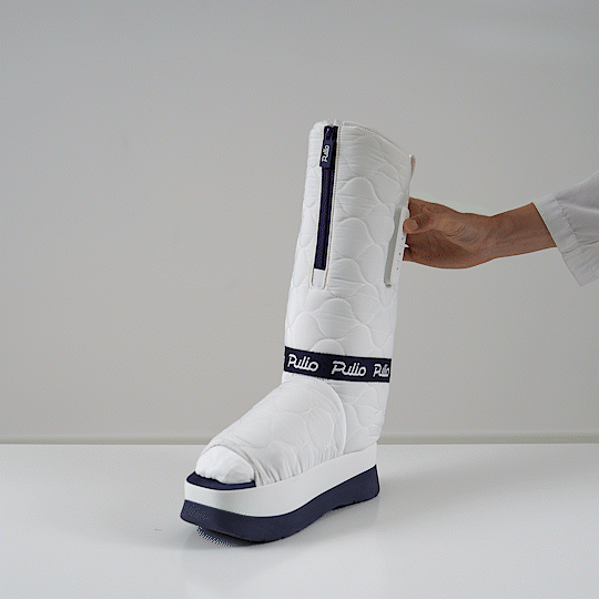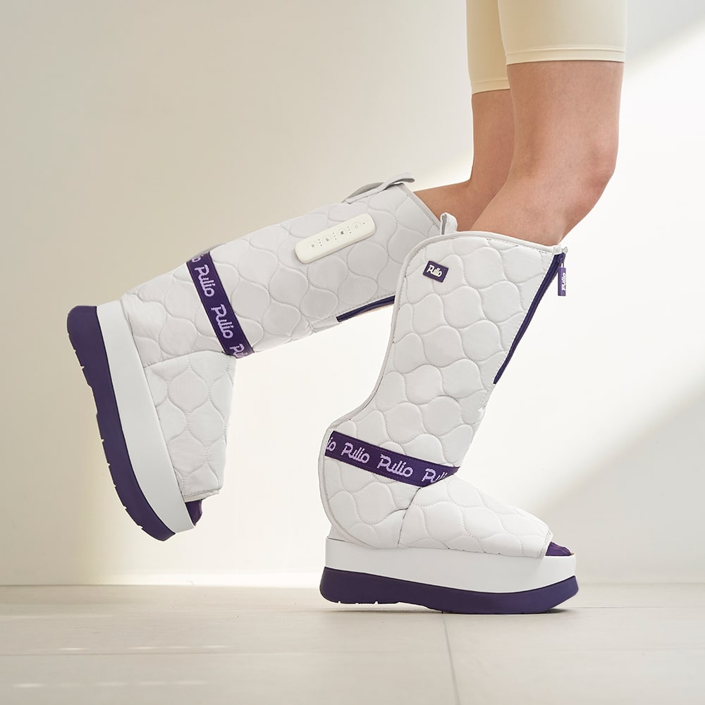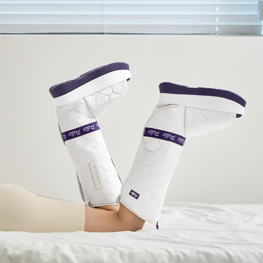 풀리션 마사지부츠는 다리 구조에 맞게 설계된 인체공학적 디자인으로, 편리한 착용이 가능한 지퍼 형태와 벨크로를 부착하여 개인의 다리 사이즈에 맞게 조절할 수 있습니다. 또한, 보행감을 높여줄 쿠션감이 있는 아웃솔과 세 가지 컬러(미드나잇 퍼플, 크림 화이트, 팬텀 블랙)로 구성되어 있어 취향에 맞게 선택할 수 있습니다.