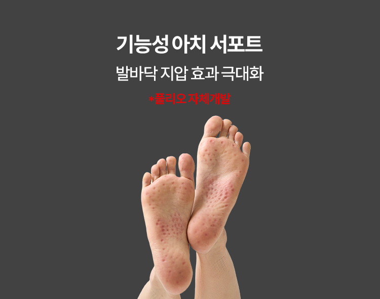 - 아치형 지압 돌기가 발의 곡선에 맞춰 설계되어 밀착감을 제공합니다.
