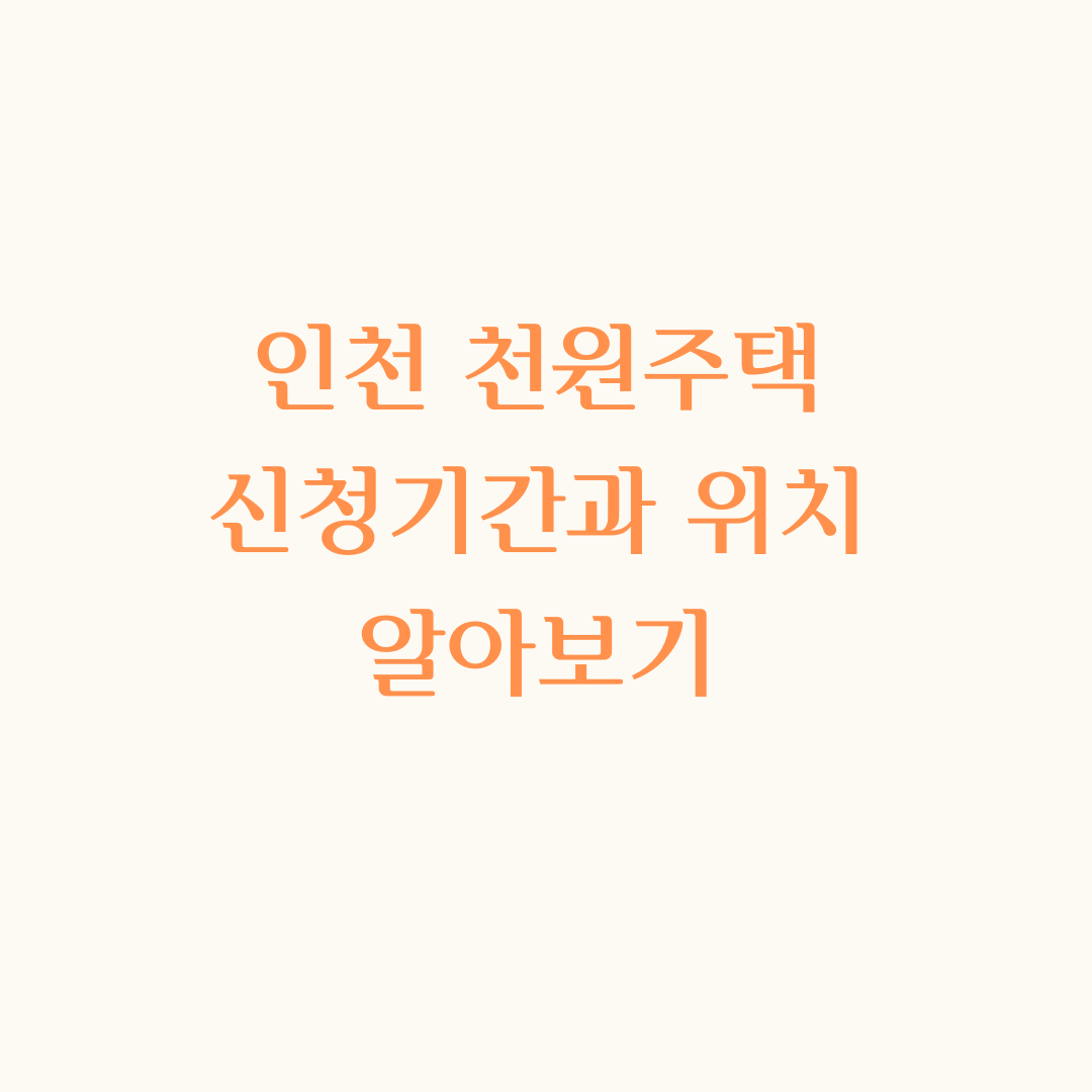- 인천 천원주택 신청기간과 위치 알아보기 목차