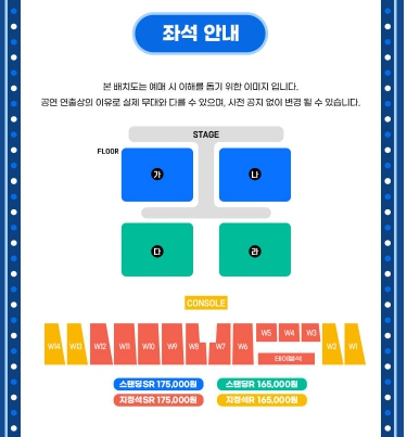 본 배치도는 콘서트 공연장마다 다릅니다. 이해를 돕기 위한 이미지이오니 참고하시기 바랍니다.
