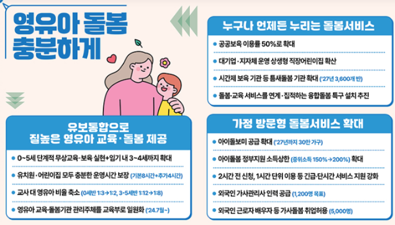 - 아이 돌봄 서비스 연령 확대 : 0~11세 유아동 누구나 이용 가능
