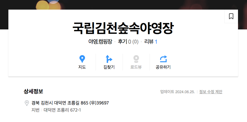 김천 숲속 야영장 위치
